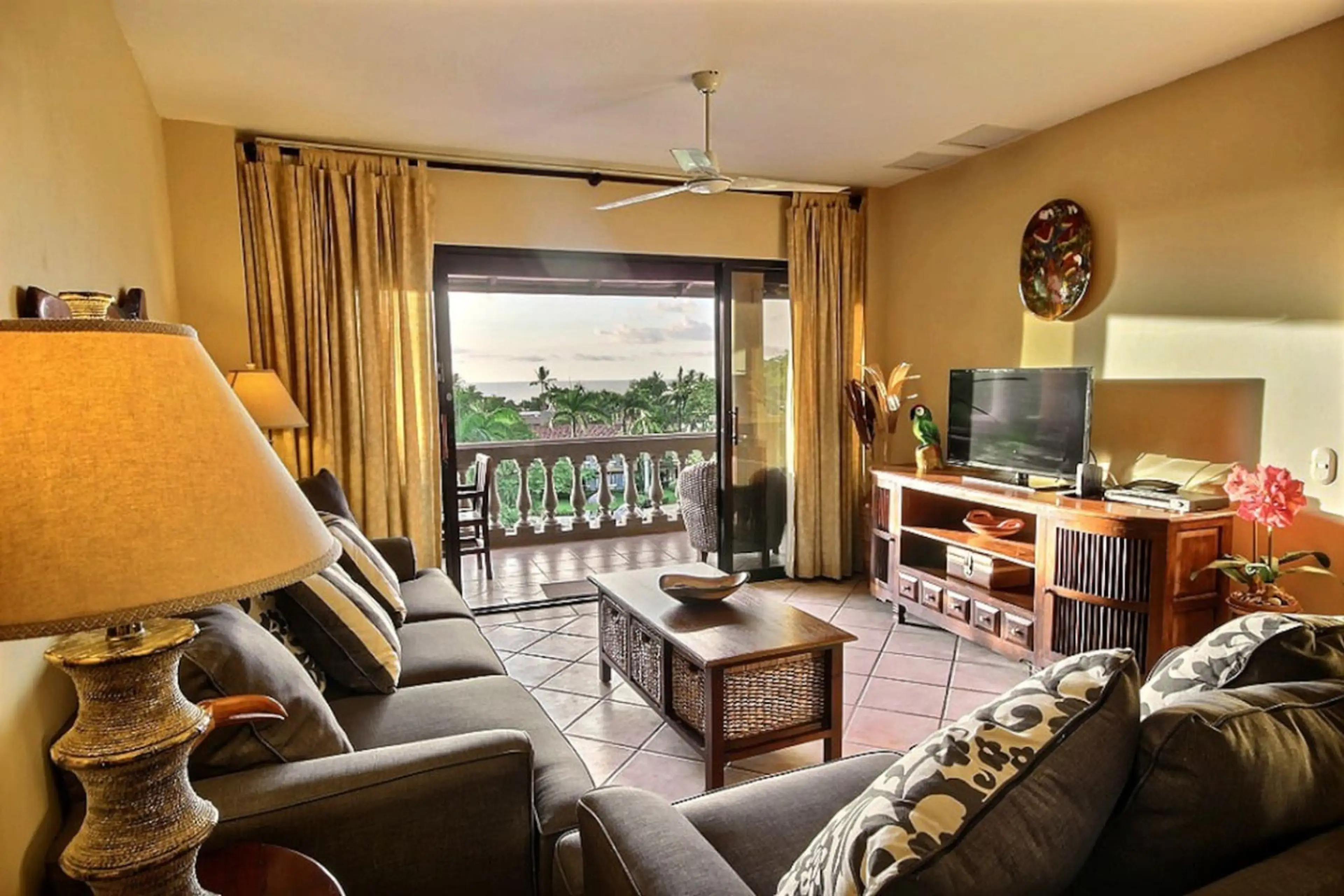 Bright 2 bdrm, 1 bathroom ocean view Tamarindo Diria condo. Just renovated with sleek kitchen, bathroom with big shower, new sofas and linens and long terrace with BBQ and bar - perfect for soaking in the views. Enjoy the fantastic lagoon pool with swim-up bar. Great location on a quiet hill inside ...